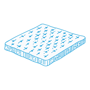 - Трикотаж с резинкой по периметру Трикотаж с резинкой по периметру Трикотаж с резинкой по периметруЧехол крепится при помощи резинки, которая пришивается по периметру чехла. Это защищает боковые части матраса, а также позволяет плотно натянуть наматрасник.
