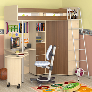 Кстати, подойдет этот тип и для одного ребенка. Просто организуйте спальное место на верхнем ярусе, а первый оборудуйте под рабочее место (письменный или компьютерный стол), приспособьте под комод либо шкаф с выдвижными ящиками для хранения одежды, постельного белья или игрушек. Вариантов много, все зависит от ваших потребностей и фантазии.